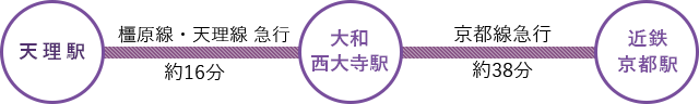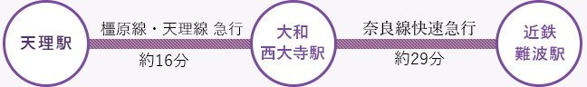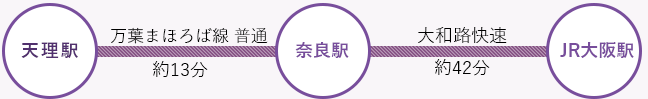 西名阪自動車道、名阪国道、京奈和自動車道、JR、近畿日本鉄道など、交通の便に恵まれ、市中心部から大阪へは車で約45分、電車で約1時間の通行圏です。